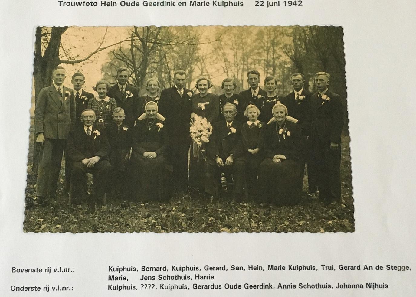 Trouwfoto Hein Oude Geerdink en Marie Kuiphuis 22 juni 1942